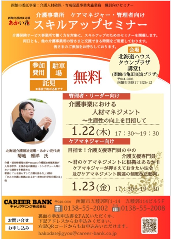 [5793] 1/22(木)管理職・リーダー向け・1/23(金)ケアマネ向け函館講演のご案内