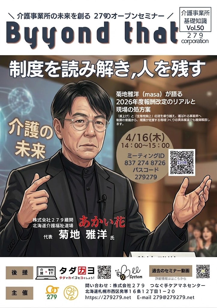 - 本日午後2時から無料オンラインセミナーを配信します。今年度の臨時介護報酬改定〜来年度の制度改正・定期介護報酬改定の流れを解かりやすく伝えます。